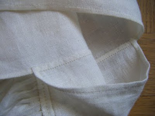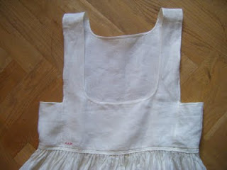 I continue my present interest in my folk costume, so be patient. My interest will most certainly turn to something else in a little while. (That’s my curse; I can never stick to one project for too long. My interest changes, but it always comes back again. So I finish most of my projects…. eventually.) Today I’ll show you my shift, or särk in Swedish. This sleeveless kind is called, in the local dialect, hankasärk. I made it a while ago, and it’s to be worn as the first layer of the folk costume. I will not post a picture of how it looks when I wear it, since it has a very low neckline.