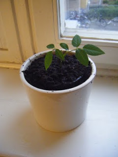 A while ago my cat broke of a rose from the plant in my living room window. I put it in a vase, and, as so often happens with me, I forgot to remove it when it had wilted. A few days ago I got tired of it, and picked it up to throw it away, when I noticed it had begun to sprout roots! I already knew that this plant is resilient; it’s almost died on several occasions, when I’ve been away for a while, but I have always been able to nurse it back to strength. So I’m making an experiment now; I’ve put the twig in a pot of soil, and then I’ll see what happens. If I’m lucky, I will have a baby rose as well as a big one. It still looks good after three days, so I think it might work.