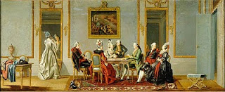 The dress I have decided on making is very much inspired by Swedish court dresses. The court dresses was introduced by King Gustav III in 1778. The history about how it got introduced is a bit complicated, so I won’t go into that. The dress has looked pretty much the same all the time it was in use, only the silhouette changing with the fashion. This is how it looked when it was first introduced (the lady to the right):