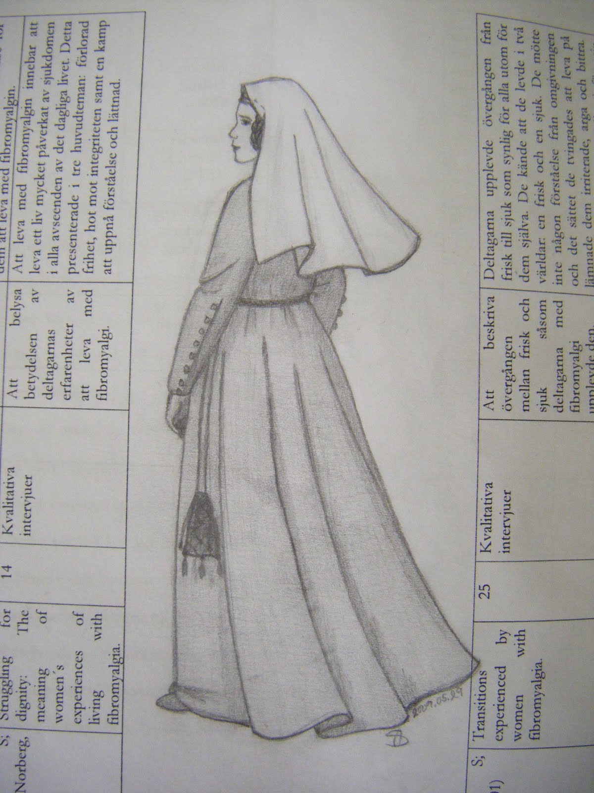 Since I was a little girl I have been drawing on all paper available, including envelops, programmes and writing-pads in school. Many times it felt like drawing was the only thing that carried me through tedious classes. I was never bad in school, my marks were good enough, but I must do something with my hands, it helps me concentrate. To sit still just listening to the teacher was driving me mad, and so a lot of my writing-pads were covered in drawings. I’m better at concentrating in school now, but I still fall back into my old pattern of drawing in class sometimes. This is a thing I did last year when I was bored to death in a class that didn’t add anything to my knowledge.
