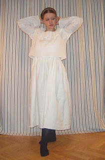 The starched, white headdress was worn by married women alone, as a symbol of their social status. A married woman would not be seen outside the immediate family without a kerchief of some sort on her head. Today, most people who wear folk costumes in Sweden omit the hats and headdresses, thinking they look silly. I can agree, but think it depends on the setting. I might do both, wear it over my braided, tied-up hair sometimes, and at other times wear my hair uncovered in the styles I usually wear, all according to the occasion. Like I said before, the costume is to be worn to parties and such in this time and age, so making some exceptions and adaptions is all right in my mind. I will for example wear make up, though I will probably not wear modern jewellery.