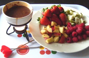 A couple of days ago it was my birthday. Tobias made me a surprise breakfast consisting of chocolate fondue with fresh apple, pear, raspberries and strawberries. That was such a nice way to start the day.