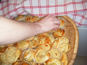That day we also made cinnamon rolls, vanilla rolls and apple/almond paste rolls. They were very tasty and very many. We brought some over to my in-laws, where we were invited to dinner yesterday, and we’ve put a lot in the freezer.