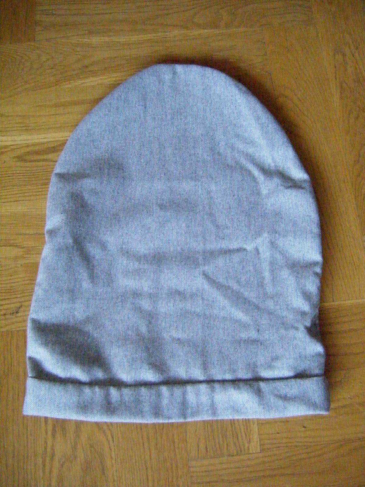 The bag hat is of a kind seen in late 14th century pictures. The construction is extremely simple, a deep pouch with the edge folded or rolled. The colour is not very exciting, but it’s what I had at hand, and will have to do for now. I worked with scrap pieces, so I had to sew a band to the bottom of the hat to make it deep enough. It won’t be seen when worn though.