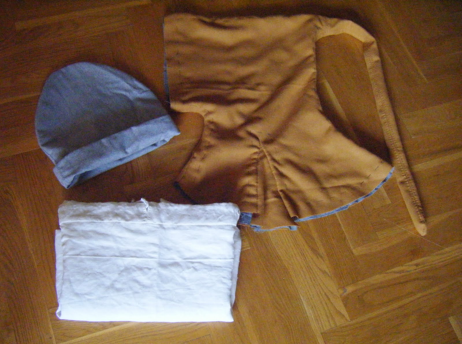 The hood is inspired by finds from London and Herjolfsnes on Greenland. It’s made from what was left after I’d made my mustard kirtle last year. The lining is cut from another old kirtle, so there are a few seams in odd places, but that should be period acceptable, I think. I still haven’t cut the bottom of the cape properly.
