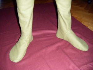 A short post to say that I (re-)finished the foot parts of the hose yesterday, and am very much pleased with them. They look several times better than before. As I said before, I really can’t make the ankles any tighter, as Tobias can just get his feet through them now.