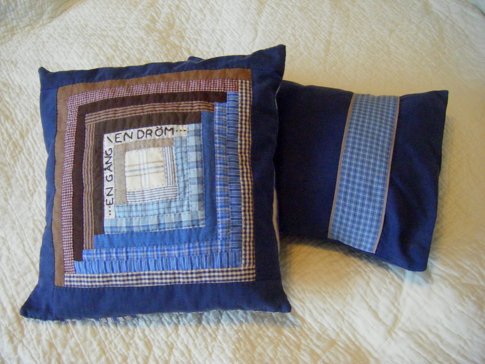 One of them is the patchwork one I wrote about earlier. I did a chain stitch embroidery with “Once upon a dream” in Swedish. Most of the fabrics used were once clothes belonging to me or one family member or other.
