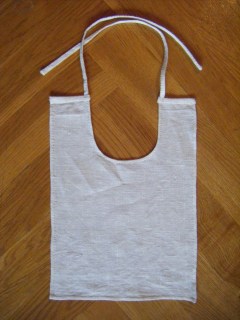 I’ve also made him a linen bib, made from coarser linen than the shirt. As it is cut down from an old head scarf, it’s worn quite soft. The bib is based on a couple of 16th century illustrations (waaaay to late for us, I know) and the fact that little B pukes. A lot. He’s also started to drool – we think he’s teething. I really need some protection for his wool cotes, so even if I haven’t seen any bibs in 14th century art, I will use them. I asked the other members of the group, and they seemed to agree it was one of those rare occasions when “it is likely they….” is acceptable as a reason for doing something. Usually we try to find at least two independent sources from the right year frame and geographical area before making anything. Anyway, I’ll have to make more bibs, one isn’t enough by far.