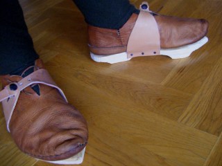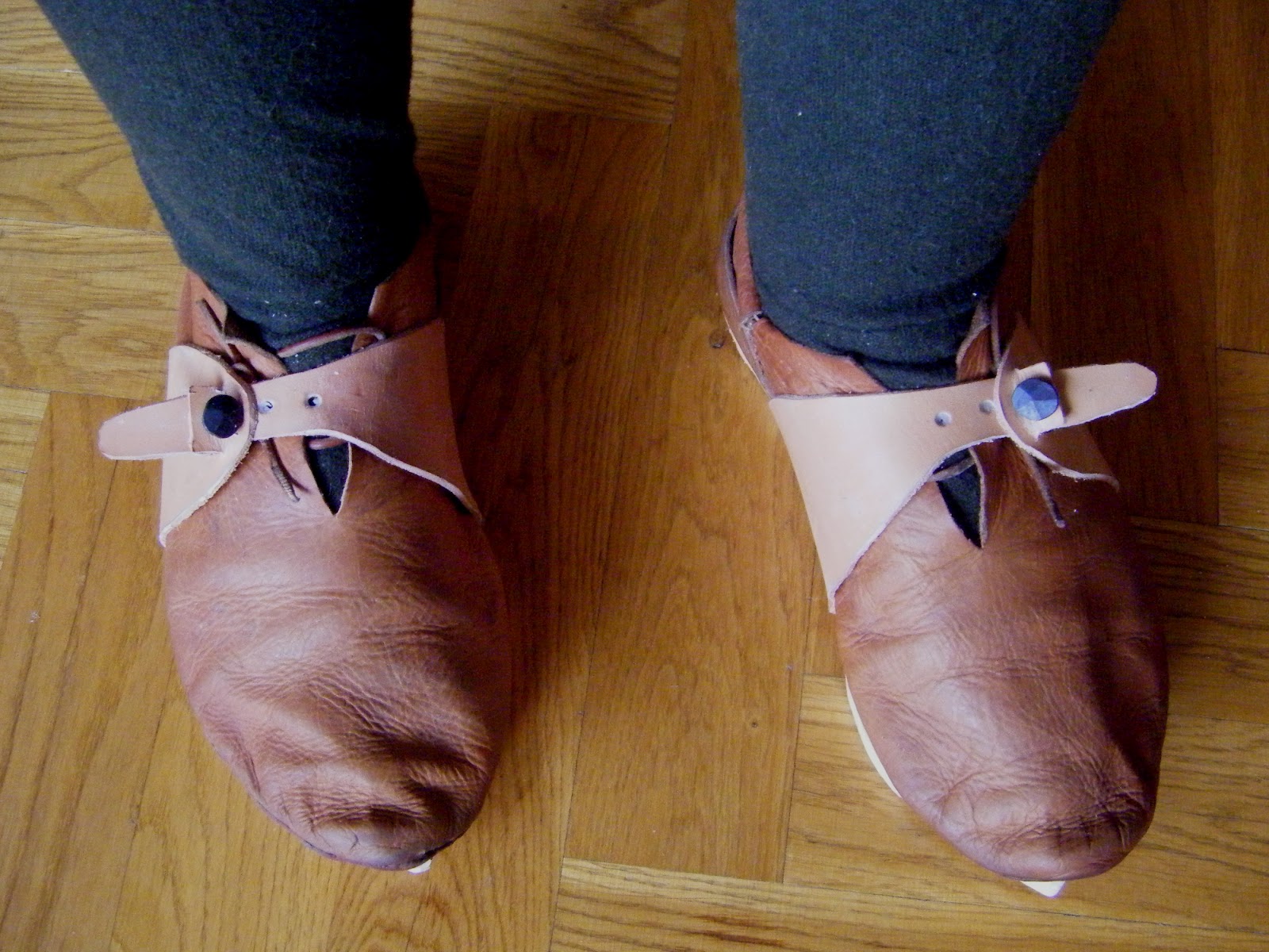 I also finished my pattens quite a while ago, probably close to two years. They are likely nothing a patten maker who had any sort of professional pride would have sold, but rather what a clumsy amateur or apprentice might have made. Wood work is not my best talent. I don’t think the wood (pine?) is the best choice for pattens, but like so many times before, I’ve had to make do with what have been at hand.