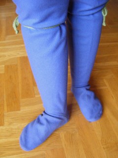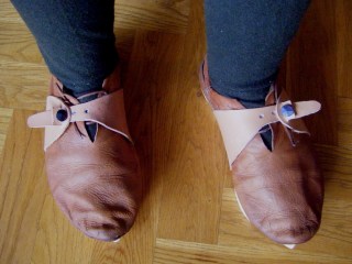 And even if it rains I’m not sure I’ll dare to use them as long as I have a baby to carry, it’s likely to be very slippery with these on. On the other hand, so are leather soles… Hm. If I ever make new pattens I’ll make them higher and with the “heels” closer together for ease of walking, but for now, these will do.