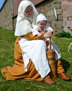 Two weeks ago we attended the annual medieval days at Varberg fortress again. As usual, it was fun (and as usual, not very much of interest to buy for serious reenactors), and I was in a much better mood than I was in Lund. B was on his best behaviour (but then, he’s usually an angel), we only had to stop once to nurse him on the way there, and not at all on the way home, as he slept the whole time. He charmed everyone, and made very good advertising for babies.