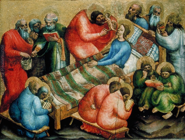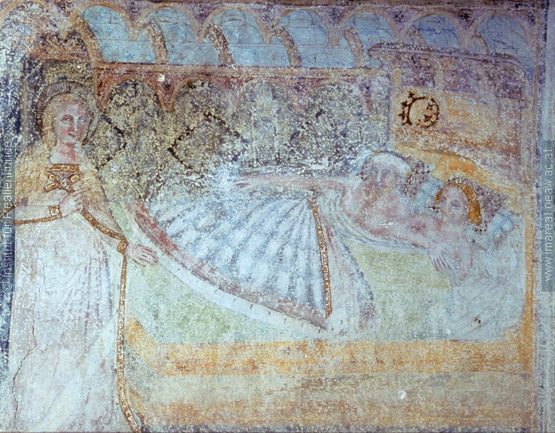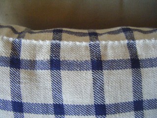 Since I gave birth to little B 18 months ago I’ve had some slight problems with my hips. They are all right most of the time, but I need a pillow between my knees when sleeping or I get a bit of pain. The want for good looking pillows to bring to events have thus grown into need. Finding a suitable fabric for it was not easy though. I could have had it specially woven for me, like the one my friend Maria made for Isis, but that’d cost more money than I have to spend on pillows. So far I’ve stitched pillows into plain linen towels for every event. But then, a few months ago, I found a couple of linen/cotton blend tablecloths in our often visited charity shop, for 60 SEK ($9; £6; €7). The check is not a perfect match to the ones I’ve seen in medieval art, but will do very nicely until I stumble upon something even better. I could see pillows like this looking wonderful in soft wool.