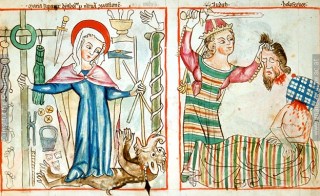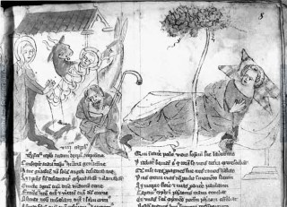 For a while now I’ve been wanting medieval checked pillows, like in the pictures below, alla found in this database. They are tolerably common in pictures from the fourth quarter of the 14thcentury (and continue to show up in the 15th century), but not so much before. I did however find one pictured as early as the 1330’s. They are most often blue, but I’ve seen a few examples of red, black and green as well.
