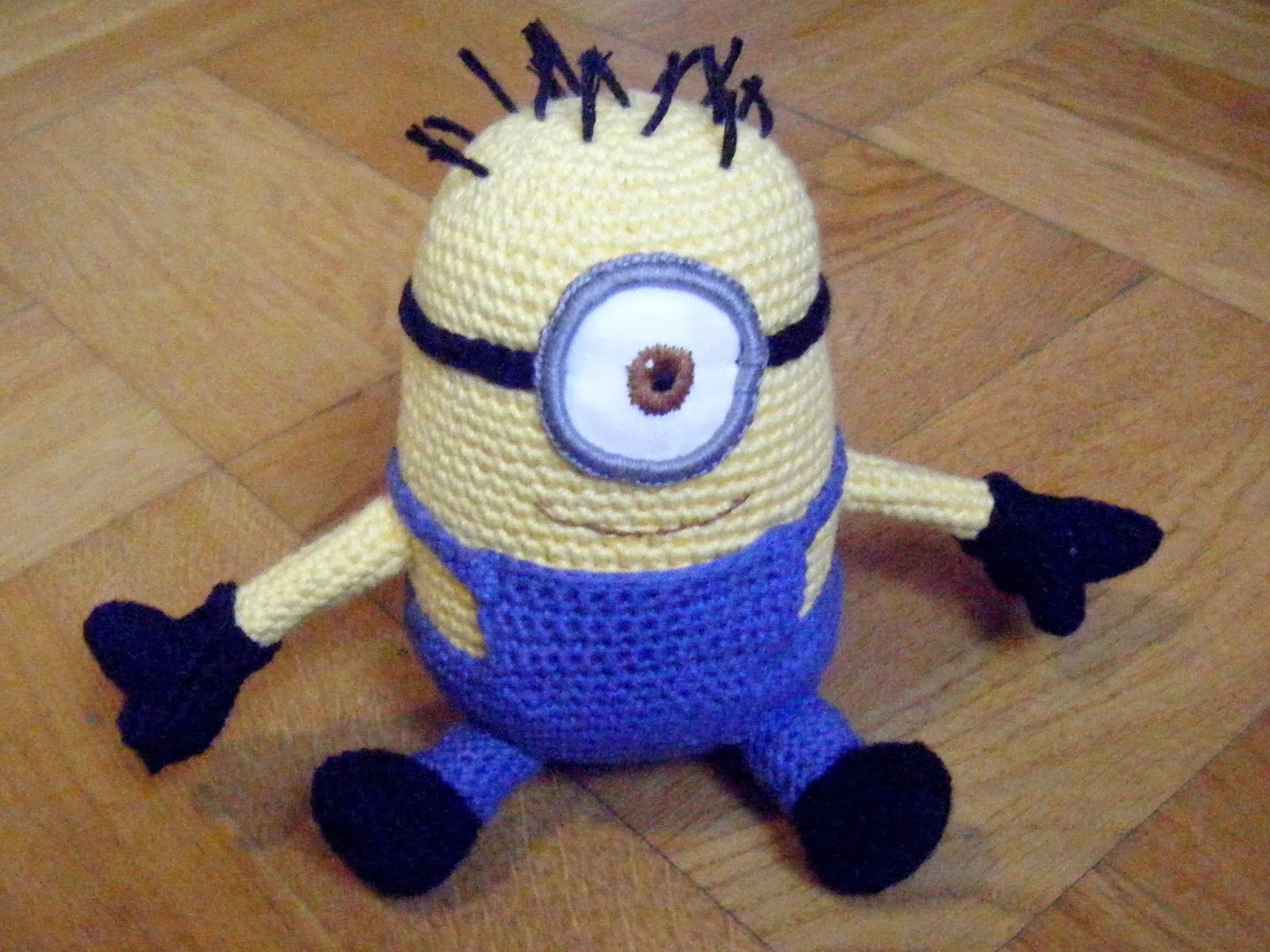 Anyway, I used one of the free patterns on Ravelry as a starting point, but didn’t like how it turned out, so in the end I improvised a great deal. I had planned to let the minion have two eyes, like this fellow: