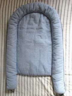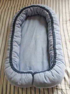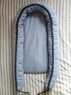 The function is quite simple: a padded bottom surface, and padded sides that are controlled by a drawstring, to change the size of the nest as baby grows.