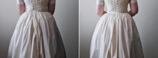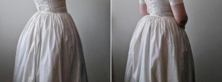 How historically accurate is it? Tolerably – there are quite a few variations on skirt improvers from this era, this is just one of them. The materials are ok, except for the regrettable blend batting. The sewing is done by hand with period stitches.