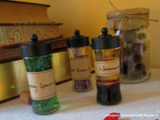 All in all it turned out really well, considering the limitations I had as to time and economy. I hope in time to be able to turn our whole home into a wizarding house at Halloween, hiding from view everything that is decidedly Muggle. If I add to my stock of odd things and decorations a little at a time, I may get there in the end.