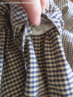 The skirt is tightly cartridge pleated to the waistband, and has numerous tucks – more than I had planned; the result from cutting the skirt too long. The tucks help a lot to prevent the skirts from clinging, they look pretty, and of course, can be let out if needed.
