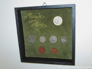 I was going through some boxes of stuff, putting some of the contents away, donating what could be liked by others, and tossing out the rubbish, when I came across some foreign coins that have been picked up when abroad. Not that my travels are extensive, but I’ve been to Scotland, and unsurprisingly all of the Nordic countries but Iceland. When looking over them I wondered what on Earth I should do with them – there was so little of every currency that exchanging them would cost more than the value of the money themselves, and we’re not likely to go abroad for a while. And then, while looking at the British coins and remembering how fascinated Ron Weasley was with the shape of the fifty pence, it hit me – why not make a small framed collection of Muggle money!