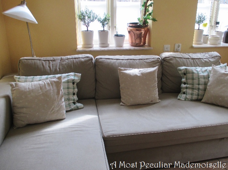 So now our old sofa looks pleasantly light, airy and ready for spring, just in time for Easter.