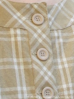 Most of this project went smoothly, but for one thing. I was ready to start on the buttonholes late one night, but very wisely decided I was too tired to safely begin such a project. You can imagine I was a bit annoyed when I still managed to mess up the top buttonhole the next morning. After some thinking I managed to mend it tolerably well, but it’s still visible if you know what to look for. Ah well. The buttons were scavenged from an old, worn out cardigan.