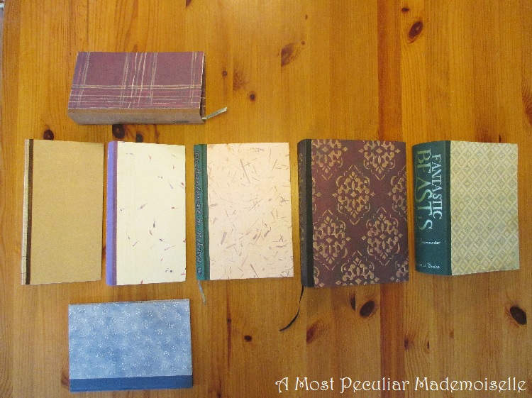 This year I have been looking at ways to make our home wizardy for the party without having to remove too much of the Muggle things. The row of faux book spines is one example of this, but I made these faux book covers before them, but fore some reason didn’t get round to blogging about them until now.