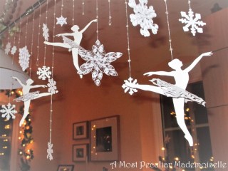 When perusing Pinterest sometime last autumn I came across some adorable paper ballerinas with snowflake tutus. Grown up though I am, I really liked them, but thought maybe they wouldn’t work in our home; they seemed more suited to little girls, and I’m the only female in the family. After several weeks, I reconsidered, thinking “well, there’s no guarantee I’ll ever have any daughters, and even if I do, they might not like ballet”. So, I decided to make a few snowflake ballerinas anyway, and have them as decoration for the “girls’ night in” I was planning with some friends.