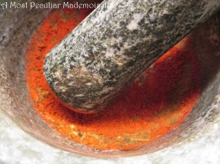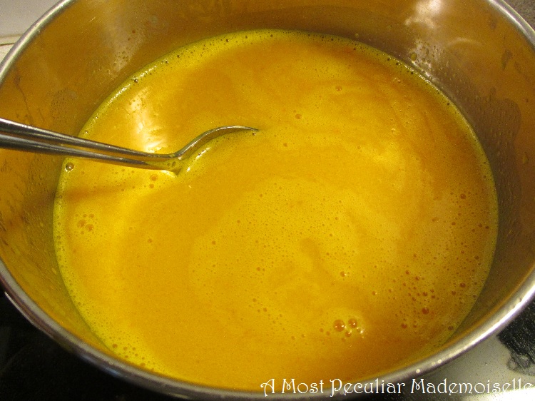 Start by melting the butter in a saucepan. While it’s melting, grind the saffron in a mortar to release the flavour. You don’t want a weak saffron flavour, so feel free to add a bit more saffron than the recipe calls for.