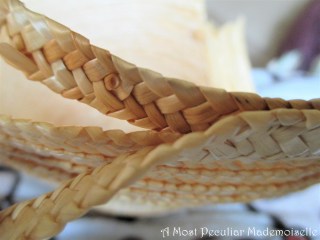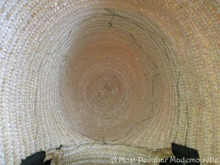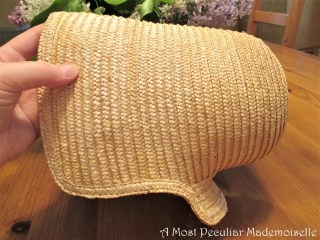 About eleven years ago, when I lived in my first flat, I picked up a straw hat in a charity shop, stitched with cotton thread. I’m afraid I don’t have a picture of how it looked, but imagine something closely akin to a “dixie cup” sailors cap. I realised that when unfolded it would form a good base for a 19th century bonnet, but I didn’t yet know if I wanted an Empire/Regency one or an 1840’s one. So, like many other “someday I’m going to make something really nice from this” items, it ended up in my stash. I took it out from time to time, but never felt brave enough to get started.
