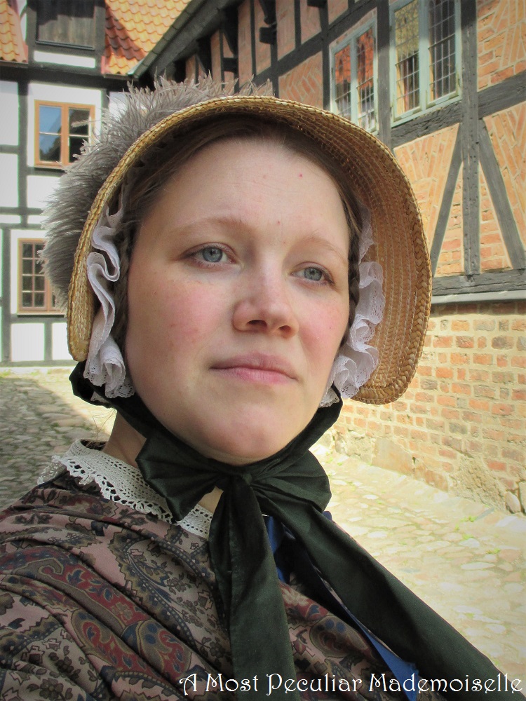 And that was that, all finished. I hadn’t added cheek ruffles to the inside, so I wore a cap under the bonnet instead to give a similar effect. It might be an old-fashioned thing to do for the 1840’s, but it looked nice enough. I felt very Cranford.