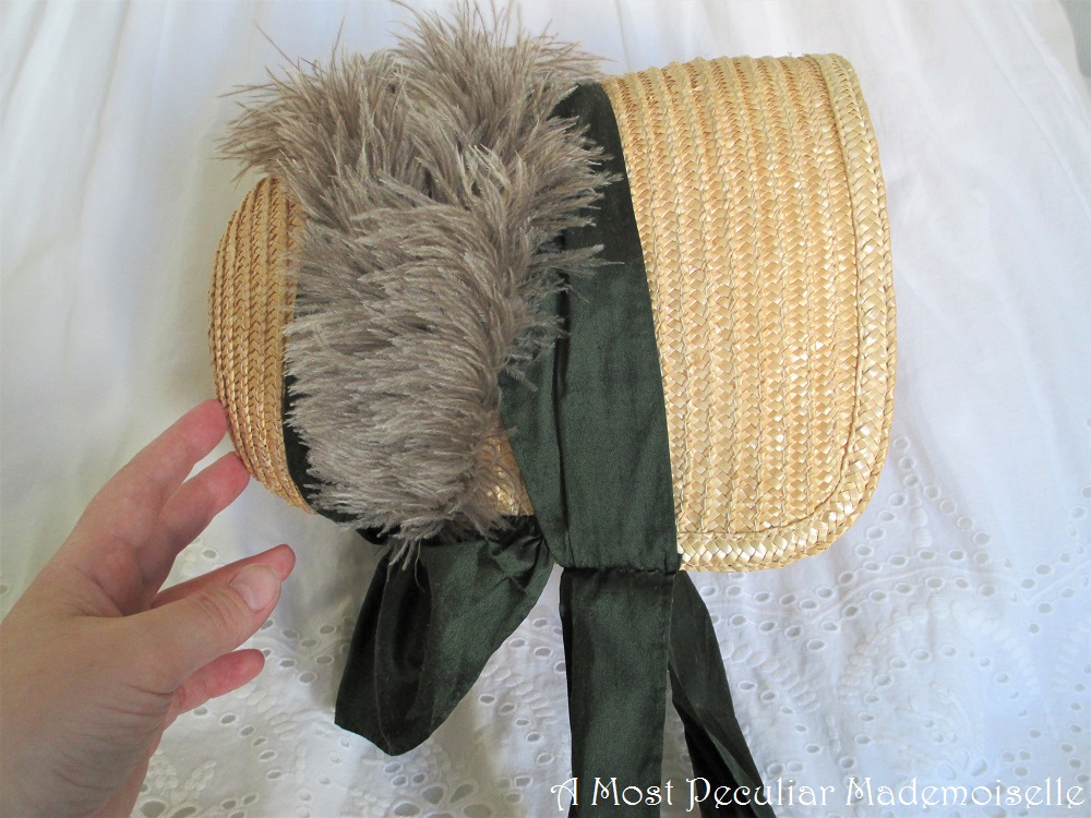 I wrapped a long strip of silk round the bonnet, arranging artful creases here and there. Silk ties were also attached.
